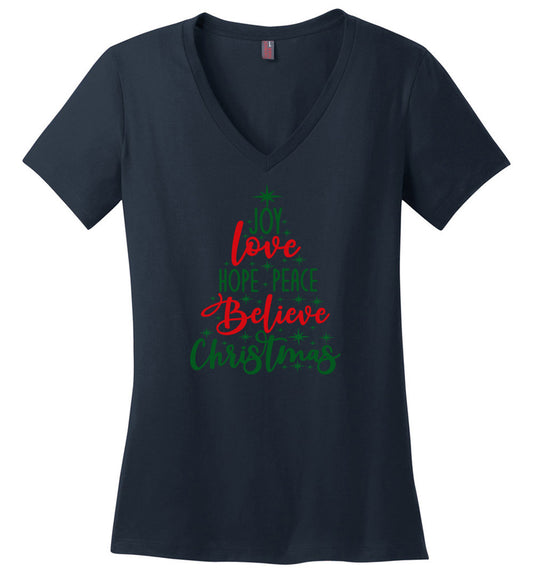 Peace Love Joy Christmas Tree- V-Neck