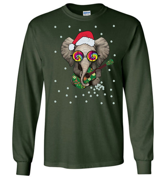 Hippie Elephant- Funny Holiday Long Sleeve T-Shirts