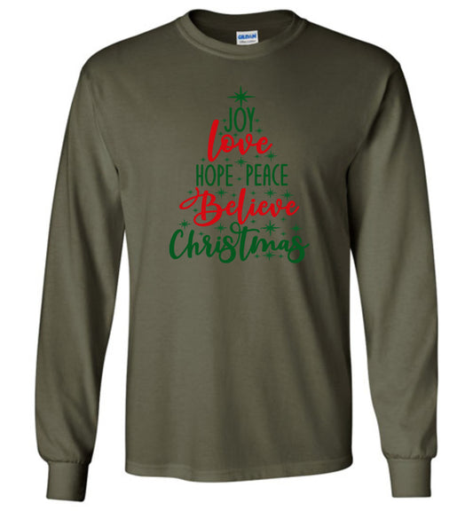 Peace Love Joy Christmas Tree- Long Sleeve T-Shirt