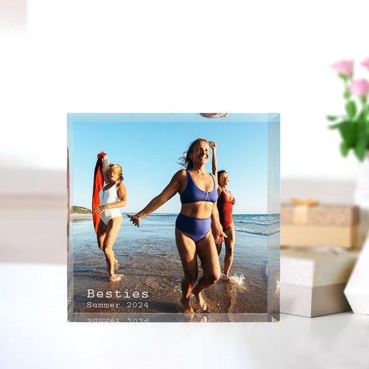 Personalized Acrylic Photo Block with Custom Message – Freestanding Keepsake Gift