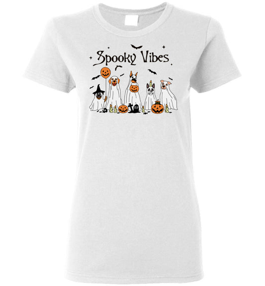 Dog Spooky Vibes Ladies Short-Sleeve T-Shirt