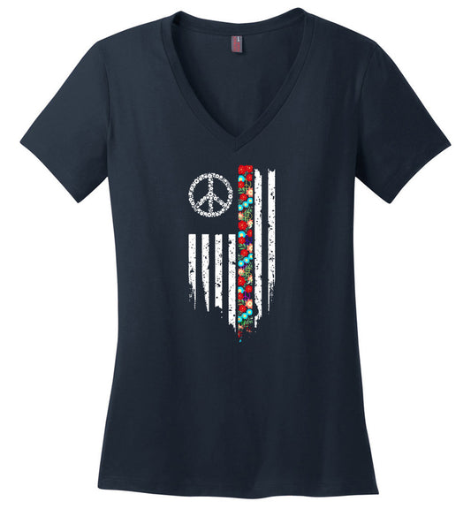 7% OFFFloral Peace Flag V-neck