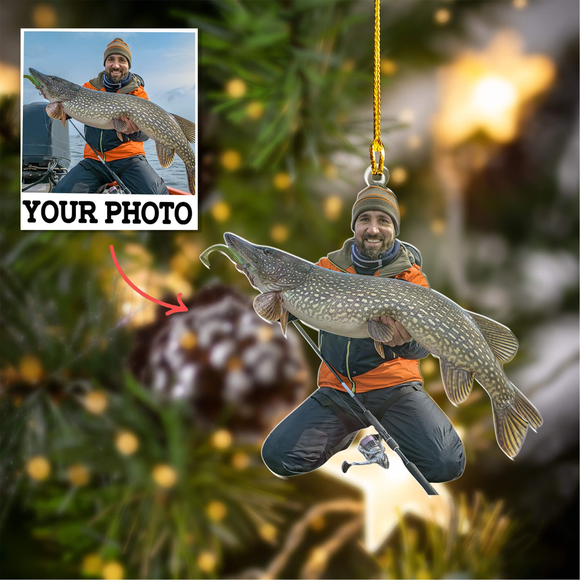 Personalized Double-Sided Acrylic Fishing Ornament - Delightful Christmas Gift for Fishing Enthusiasts, Friends, and Family